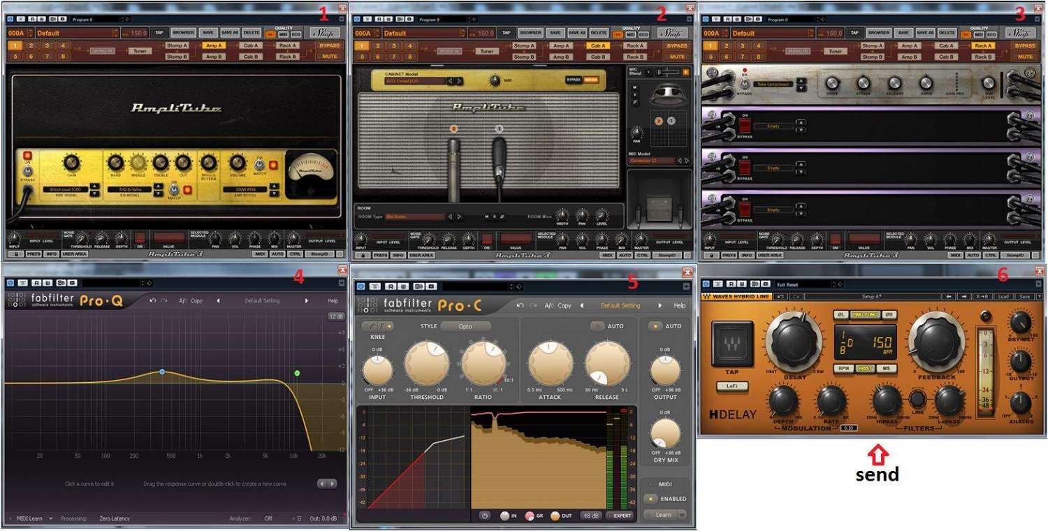 да ничего я там ни крутил особо, просто взял твой файл и услышал знакомые "оттенки", которые сразу вызвали в памяти амплитуб ( они все между собой похожи когда имитируют маршалл), остальное просто немного подогнать под твои ударные и делей для "полетности"