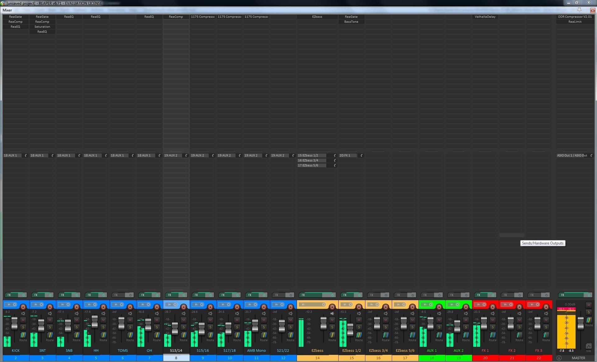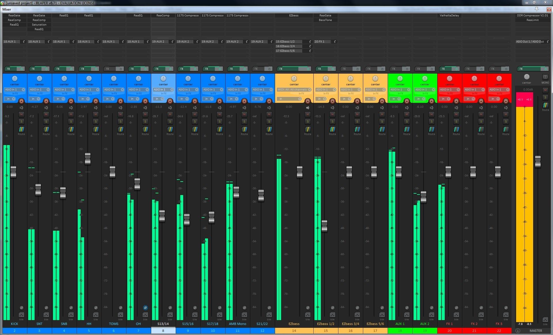 Более того, все это хозяйство, которое может иметь различную маршрутизацию, и обработку можно сохранять в темплейты и в любой момент вызывать в текущий момент, например 15 каналов ударной установки со своей обработкой, или пачку треков для баса - что угодно и как угодно.