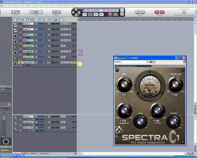 Всем привет. Вопрос в следующем, как пользоваться компрессором при обработке ударных в сонаре? Сами ударные я набил, использовав изи драмер, и решил заняться компрессией) Попробывал с помощью Spectra C1 compressor, но он хоть убей не видит ударных, даже если скопировать набитые ударные в его строку, т.е. ничего совсем не происходит, кто нить расскажите как его задействовать)