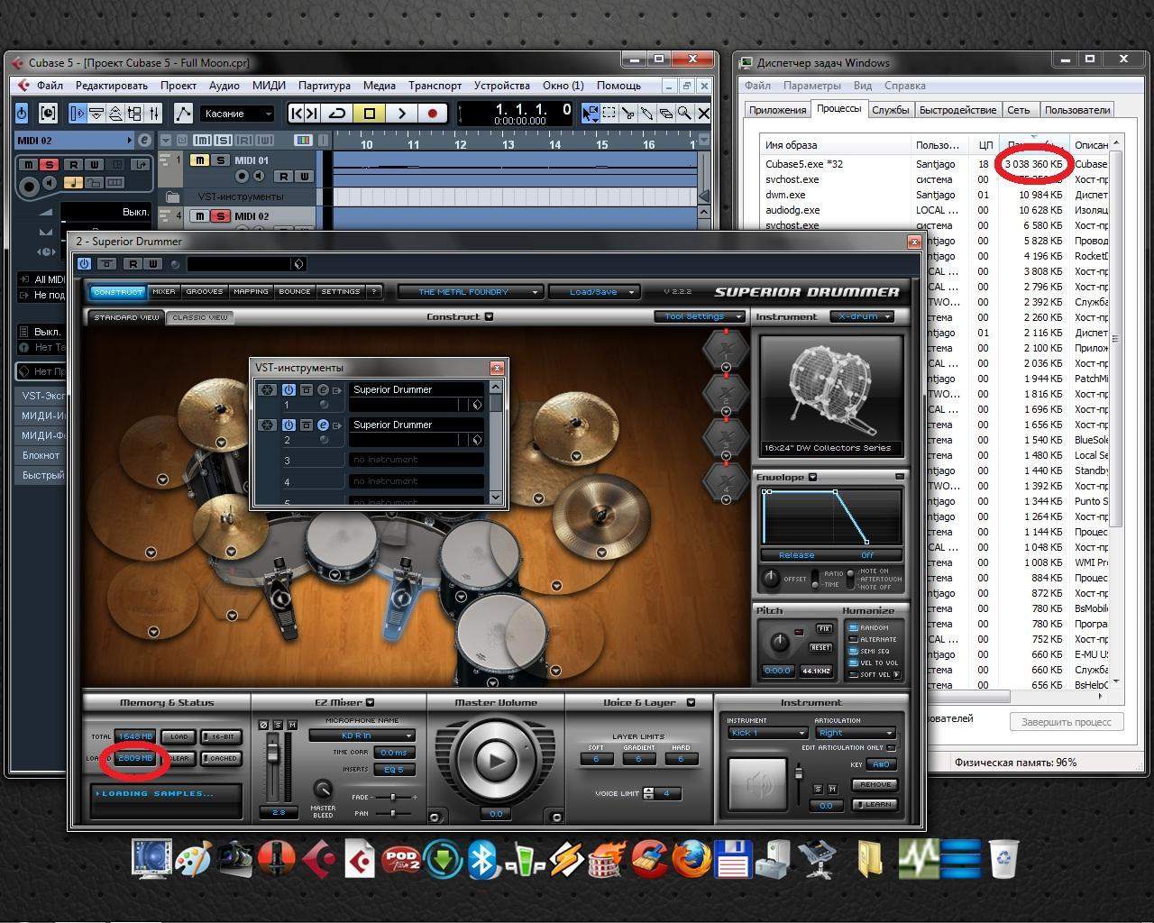 Kmat2, куб работает с асио-драйверами, они обычно позволяют использовать только 1 звуковуху, но можно попробовать активировать две карты под asio4all, это универсальный асио-драйвер, работает с любыми картами, у некоторых такой трюк получается, но задержка обычно выходит больше, чем на родных дровах, а иногда вообще все просто глючит, короче пробуй