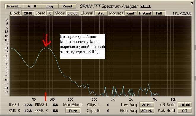 по оси Y у тебя уровень этих частот идёт (то бишь от -12 до +12 ДБ - где как), а по оси Х - это шкала самих частот (от 0 Гц до 16 кГц)...так вот ставишь спектральный анализатор и смотришь пик относитльно оси Х, т.е. относительно шкалы самих частот, затем вырезаешь в этом же районе частоты на бас гитаре и самое главное слушай! Сначало включи и пусть играют только бас с бочкой и отключай попеременно их и услышишь, что бас мешает бочке, затем проделай операцию с вырезаним частот и опять слушай...можешь так же попеременно отключать эквалайзер на басухе и слушать как бочка то появляется, то опять исчезает где-то за басом, если опять что-то не нравится - крути еще экалайзер, но не переусердствуй, эквалайзер - это как скальпль у хирурга, если что вырежшь не то, то весь микс может полететь...