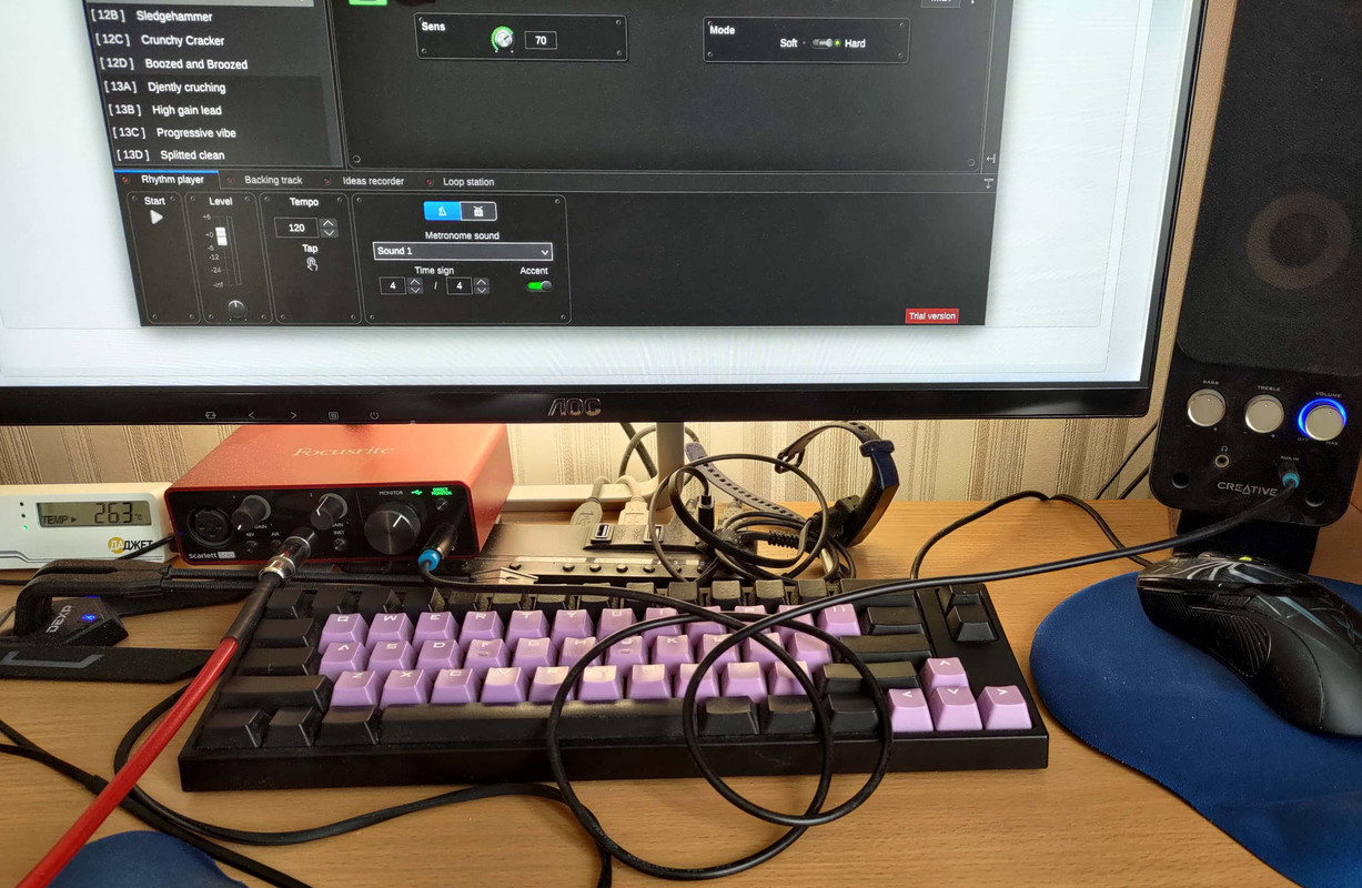 Звук гитарный есть из звуковой карты, но чистый. А Tonelib GFX ег не изменяет и он так чистый и продолжает звучать. Хотя в самой программе при тестировании вывода я слышу писк из динамиков. И при тестировании входа вижу что зеленый ползунок при ударе о струны дергается.