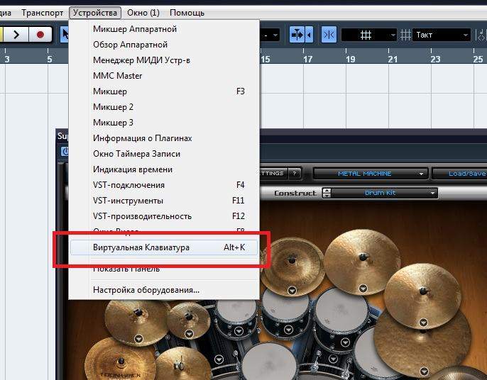 Если перетащить cakewalk плагин с барабанами, он стучит и звук есть