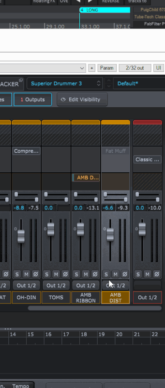 Как известно, если в установке меньше барабанов (томов, например) чем в грувах, то "удары" (ноты) автоматически переназначаются на соседние ударные. Но так получается не всегда. Если например, из трех навесных томов выгрузить (убрать) один, то в зависимости от того какой из них убран, ноты или нормально переназначаются и отыгрывают на соседнем или наоборот, продолжают "стучать" по отсутствующему.
