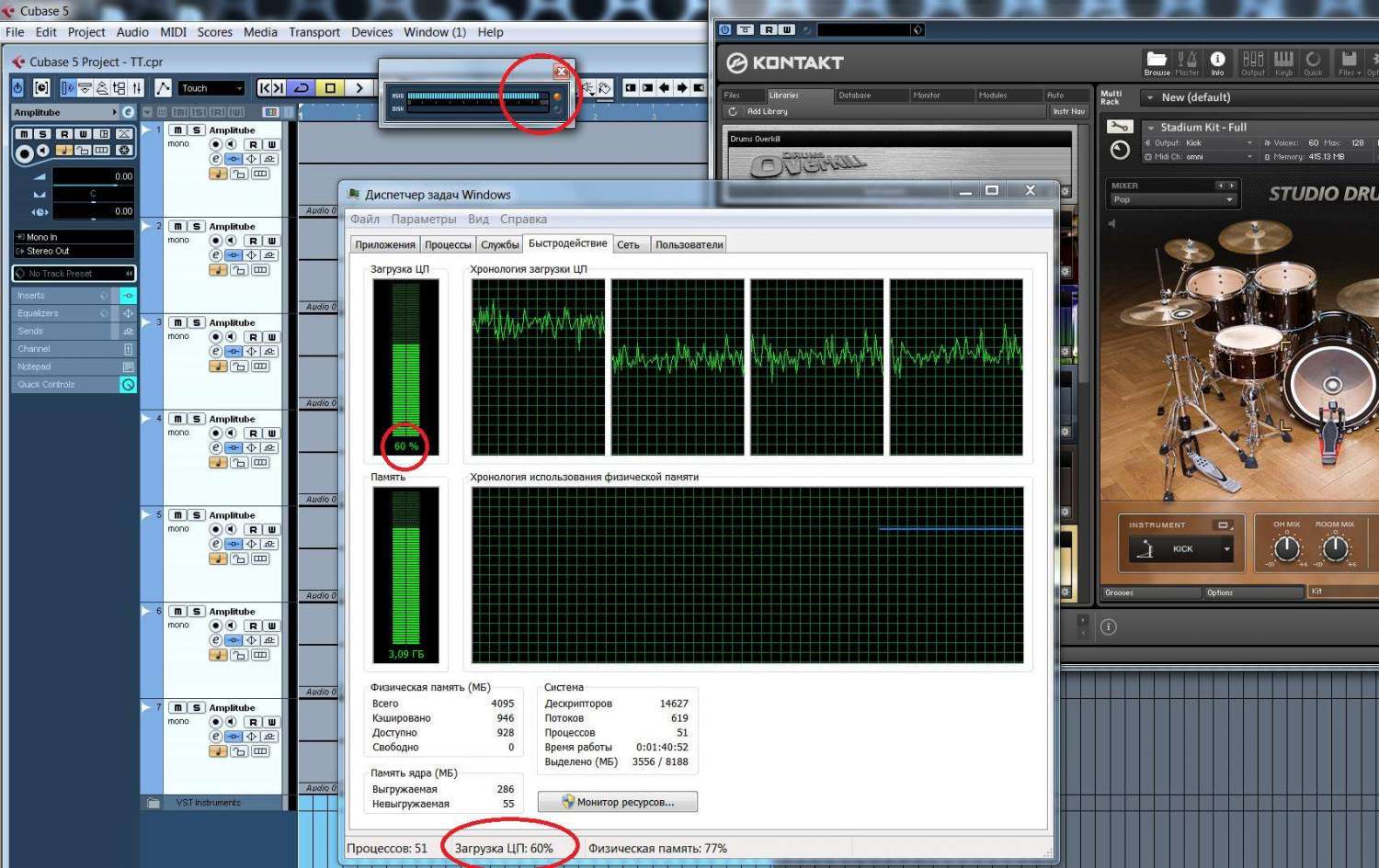 Bleedthedream, фишка в том что незнаю как в кубе, но в сонаре индикатор "загрузки проца" вовсе не индикатор загрузки как таковой, а индикатор того, успевает ли проц обработать данные из буфера, и там если он в красную зону когда лезет хотя бы на 1 ядре то всё, подтормозы почти неизбежны.. в кубе мне кажется на подобие того же... фактически этот индикатор намного важнее чем простая инфа о загрузке проца..
