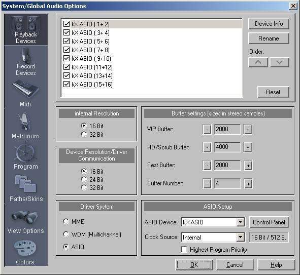 По умолчанию, Samplitude использует 32-битное с плавающей точкой внутреннее представление данных. Если требуется достичь максимального количества треков, а качество не критично, можно снизить разрешение до 16 бит и тем самым добиться выигрыша в производительности. Надо заметить, что на максимальное количество эффектов реального времени это не окажет ровно никакого влияния — они все равно будут обсчитывать данные с 32-битной точностью. А вот фейды, громкости, алгоритмы микширования, автоматизация и т. п. станут работать "в полсилы". Вот почему у меня, наверное, выход так сильно увеличивается
