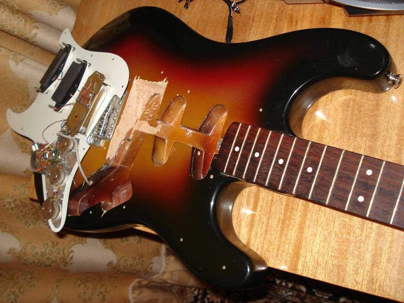 Вчера у меня появилось свободное время и я позел копошиться во внутренностях гитары, в надежде найти причину. Так как время было позднее и жена начала ворчать. Успел только почистить гриф