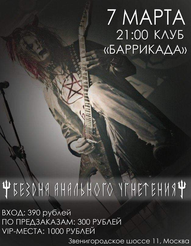 Московский концерт Самой Тяжёлой Группы в Мире "Бездна Анального Угнетения"!!! 07.03.2013 в 21:00, клуб Баррикада!