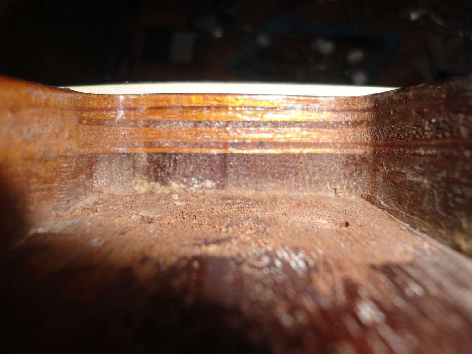 ... и добавил:Вот, например, образчик японского копирования. Это вид на нишу, в которой сидит гриф, у ЛП-образной Греки 70-х. На фото виден топ, сделанный не из клена, но из фанеры...
