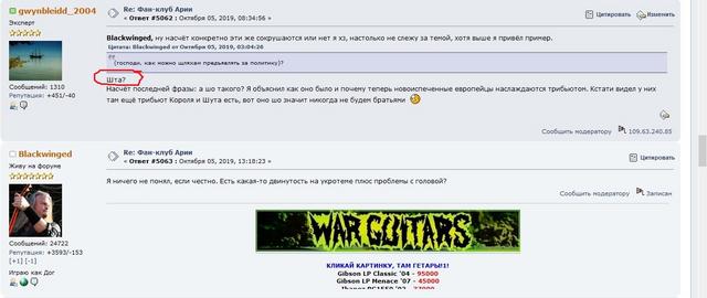 Щляхи это шлюхи типа ? Странное сравнение. Я не знаю насчет Удалова, Житнякова и Дубинина, но Холстинин и Попов не особо то жалуют правительство насколько я помню, особенно Холст, который выходил в футболке ДПНИ на концертах году так в 2007. Кроме того, тот случай на форуме Мастерслэнда показывает, что у них есть позиция, просто не всем она нравится: поехали в Крым, несмотря на угрозы потерять аудиторию на Украине. А вот если бы испугались, тогда стали бы щляхами.