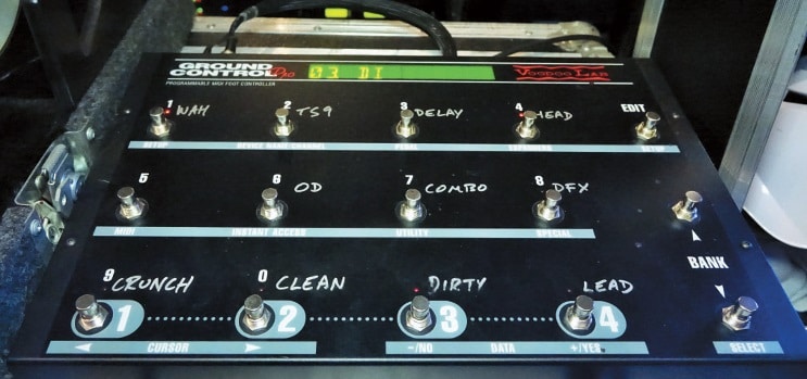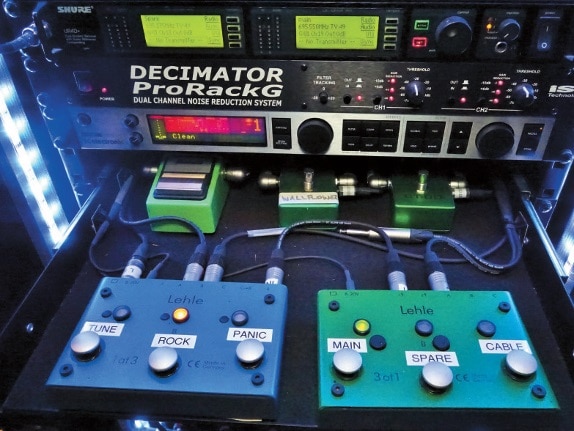 ISP Decimator, TC Electronic G-Major, Cry Baby DCR2SR, Voodoo Lab GCX Audio Switcher, Lehle, 2 MXR GT-OD