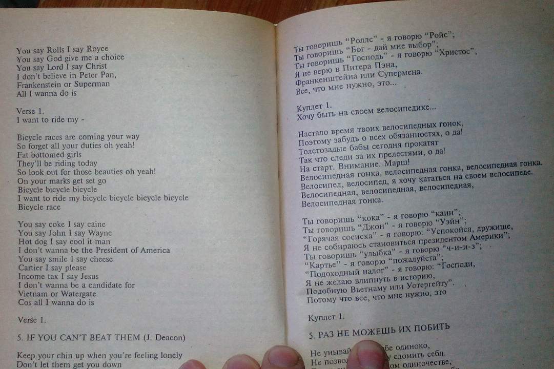 Цена была такая что можно было купить только одну из них. Я каждый день подходил и листал книги Deep Purple , Black Sabbath. Ну и судя по русскому переводу какая-то в текстах была написана ерунда. А у Queen были более человечныe тексты, поэтому решил и купил Queen.