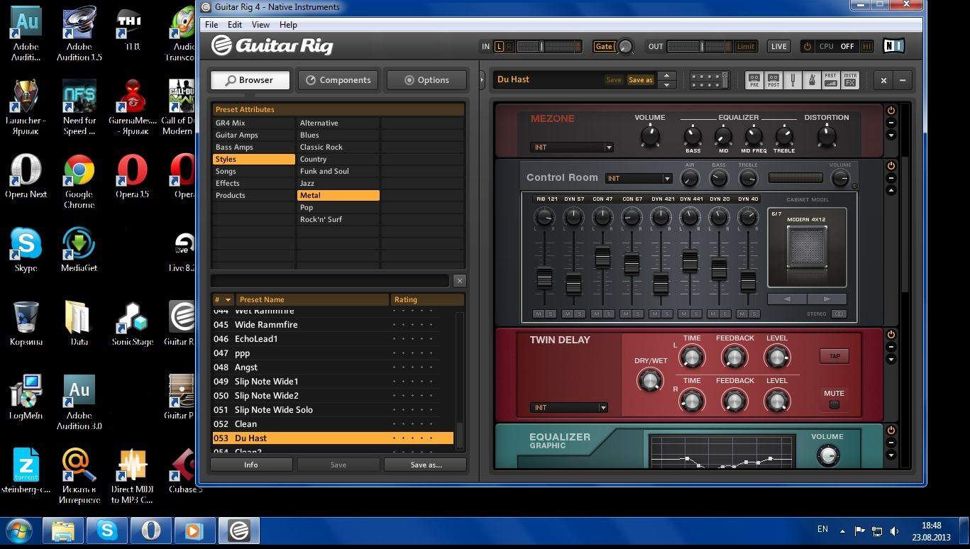 Если честно,я пытался как-то накрутить звук в Гитар Риге 4 ,как в песне Du Hast. Приближенный звук можно получить,используя вещь под названием Metalzone вроде.Пресет в разделе Дисторшн.Вся суть в настройке.