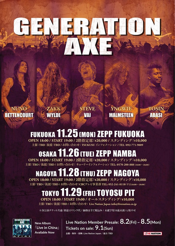 Двадцать восьмого июня на earMUSIC на CD в диджипаке и на двойном виниле с цифровым кодом, а также в цифровом варианте состоится релиз концерта GENERATION AXE, в котором принимали участие Steve Vai, Yngwie Malmsteen, Zakk Wylde (OZZY OSBOURNE, BLACK LABEL SOCIETY), Nuno Bettencourt (EXTREME) и Tosin Abasi (ANIMALS AS LEADERS):