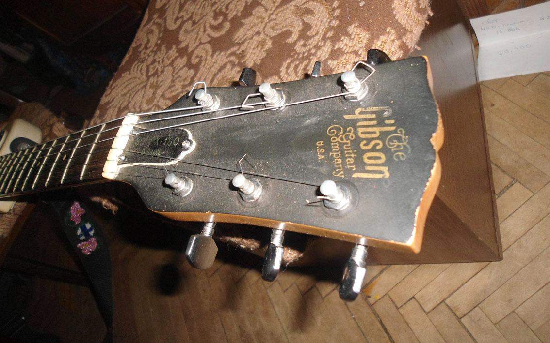 Встреча наша произошла в далеком 1989 г. Я тогда, волею судеб, остался без гитары вообще. У меня была мастеровая реплика Гибсон СГ тогда. И получилось так, что, поехав летом в Крым, я отдал этот СГ в ремонт своему знакомому мастеру. Типа, вернусь, а гитара будет готова. И вот, вернулся я, а гитара не то что не готова, а еще хуже! Мастер серьезно заторчал. И фурнитура с моей гитары пошла в уплату за его веселильные вещества. Во как. А я тогда крутой был - от Варгана ушел, а пришел в несколько известную тогда группу "Кинематограф". А с ними надо было срочняком программу делать, а гитары нет! А время тогда было, не то что сейчас - иди например в Музторг и ройся там, или шарь по форумам, по продажам до выбирай чего душе угодно. Тогда, в СССР, это была серьезная проблема. И вот,помыкался я, туда, сюда - ничего путного нет. Бывший барабанщик Игорь какую то полуакустику пытался мне впарить, а нафиг она мне, полуакустика? И вдруг второй гитарист Кинематографа, Гена Барулин, вдруг вспомнил,что у него на шкафу, под потолком, пылится нечто... Я бегом к нему. Сняли кофр, в нем гитара. Написано - Гибсон. Он говорит, Гена,это самопал, гитара его приятеля, типа ему впарили как настоящую за 4000, а сейчас он ее за 1500 отдает. Она даже и без струн была, и не проверишь)) Короче, снял я деньги со сберкнижки да и купил ее. Быстро привел ее в порядок - звукосниматели там были на ней отвратные, и я потом дооолго мучался, все не мог на нее поставить подходящие датчики. Чего на ней только не стояло, а сердце успокоилось на Сеймурах SH-1.