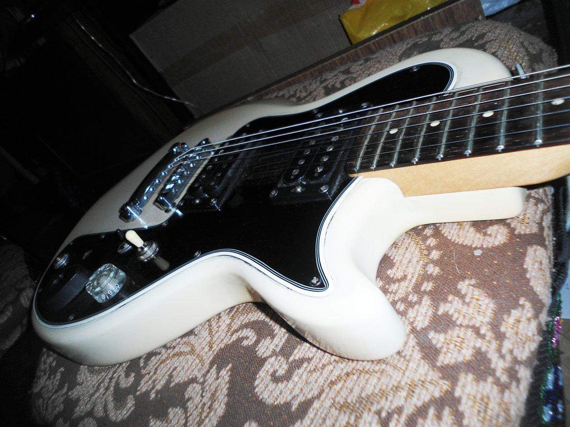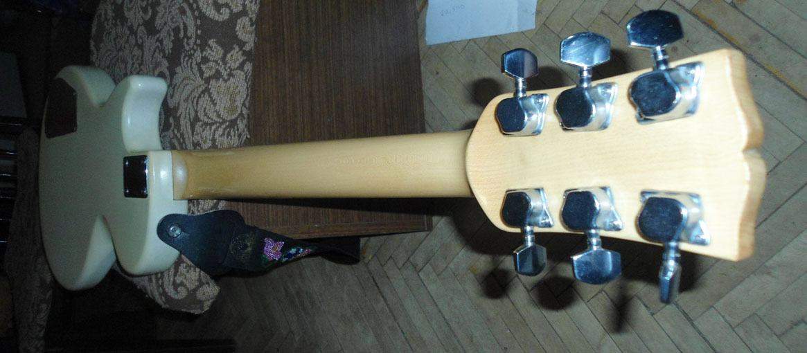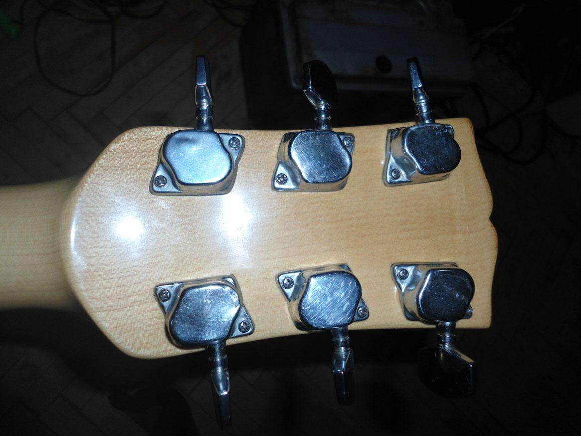 А вот корпус, в отличие от родного - из клена. Редкий и спорный вариант... Что это дает: Минусы - немного обертонов, звук такой холодноватый. Мало низов, гитара такая верхастая...