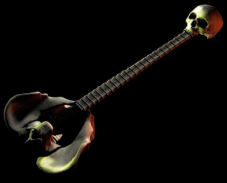 К сожалению, в последнее время у меня все меньше и меньше свободного времени) Но раз уже обещал смоделить гитару, да еще и с костями, то решил сделать ход конем. Набросал буквально за пару часов, да и не особо корпел над детализацией и просчетом. Словом, сделал лишь только чтобы сдержать слово. Появится побольше времени забадяжу гитарку как следует.
