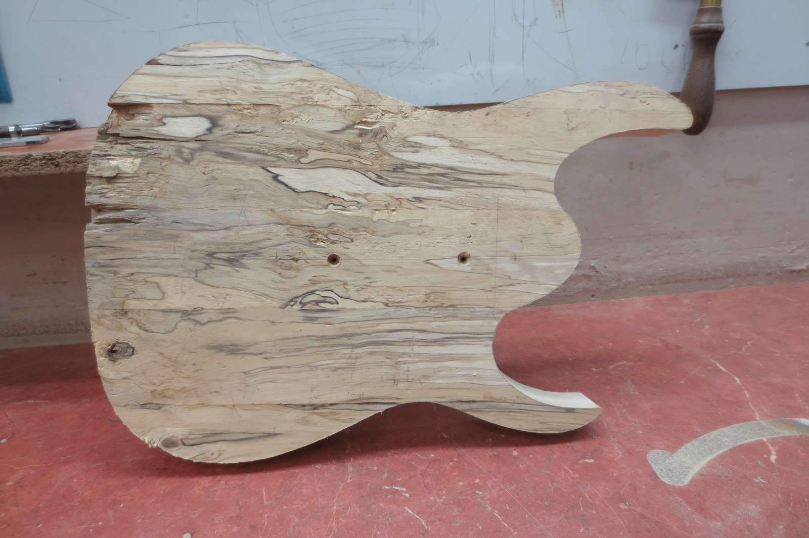 Тут уже включается элемент декора – топ своим видом будет подчёркивать солидный возраст инструмента и всю суровость жизненных перипетий. Как нельзя лучше для этих целей подходит spalted maple. Но, покопавшись в закромах, я обнаружил ещё более эффектный вариант – spalted karelian birch. Вот с таким "суповым набором" уже не стыдно приступать к работе!".