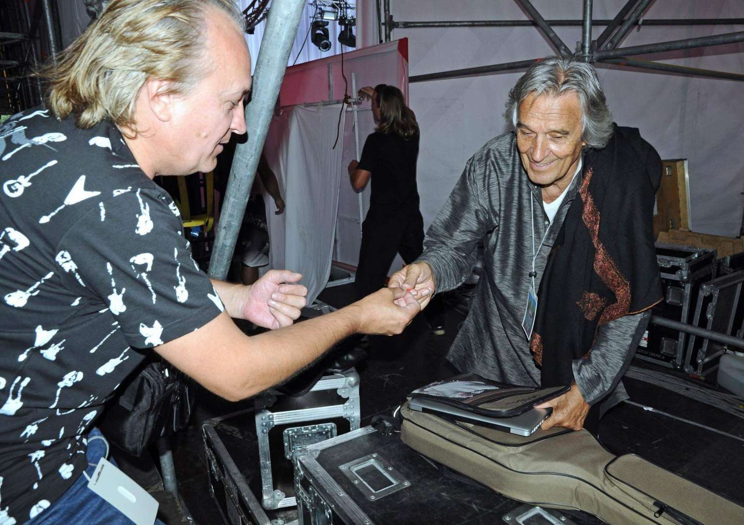 Никаких гитарных техников у него нет, сам протирал и складывал гитару, я ему помог - держал крышку кофра