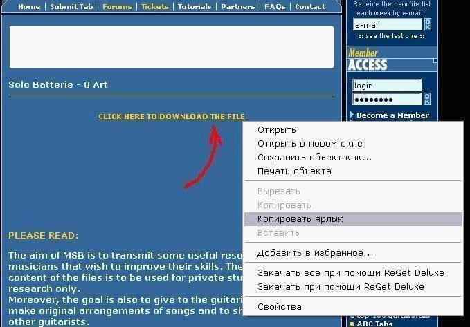 5. После того, как тыкнули, открывается следующая страница, здесь наводим мышку на ссылку "download", тыкаем правой кнопкой и выбираем "копировать ярлык"