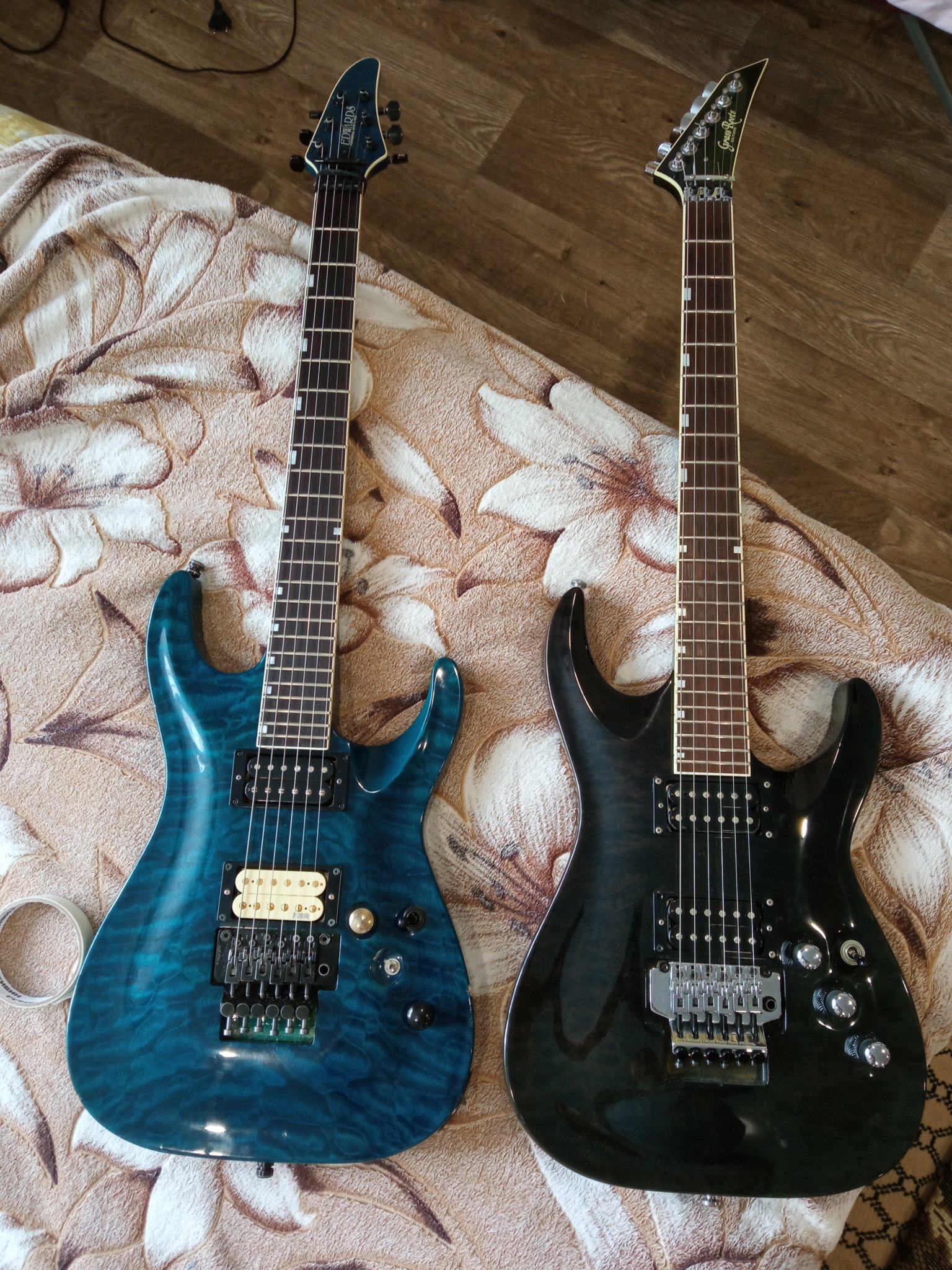 // гитара очень понравилась, вообще это мой 3й эдвардс и всё они были хорошие, пусть так говорят что они делают их в Китае, толи Японии мне по фиг, гитара на уровне, и да на шлак original Floyd Rose ставить не будут, даже порожек Шаллер немецкий, строй держит просто офигенно, как бы я не качал рычаг, звук очень классный упругие басы, чёткая середина, и приятные верха, прям то что надо, ни какого бубнежа,каждая нота читается, я люблю такой звук, возможно ясень, либо Фокин, либо всё вместе дают такой саунд, не знаю меняли ли потенциометры стоят cts , гитара экранирована, медью так что не знаю была ли заводская экранировка, сравнил со своим Грасс рутс, ну да Грасс рутс он не много слил, возможно замена датчика всё исправит , звучит после Эдика мыльно,