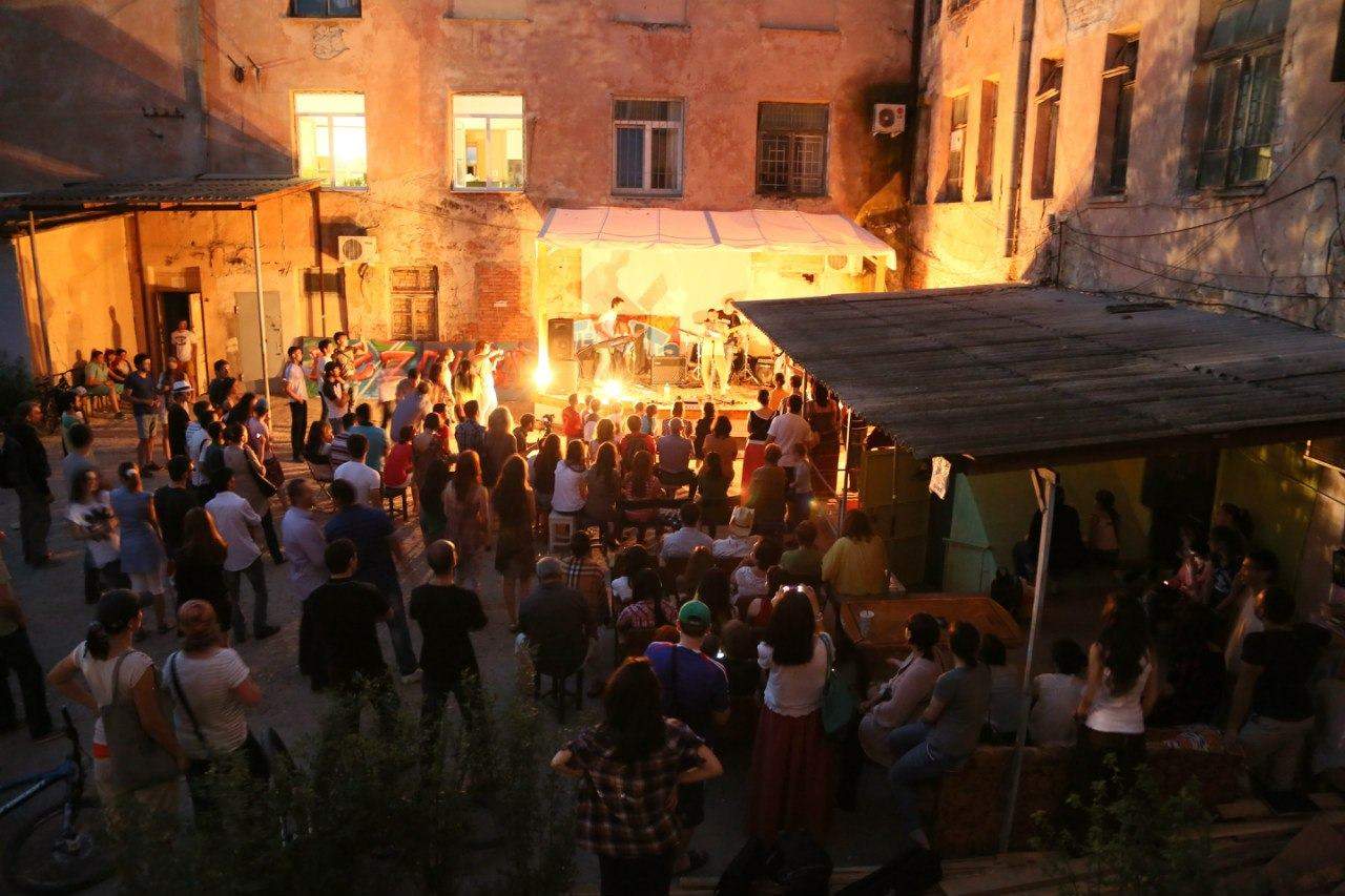 http://youtu.be/nnA073wydxAНедельное мероприятие в одном из старых дворов исторического центра Нальчика. Событие оказалось примечательно не только выставками, тренингами и инсталляциями, но и тремя днями превосходной гитарной музыки: мастер-класс Олега Кодзокова, к которому присоединился приехавший в отпуск Роман Бондаренко, выступление группы «Таймс Сквер» и гала-концерт в финале, гитарные джемы.