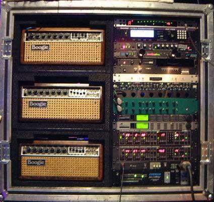 " в "Awake" я использовал в двух трэках Rectifier, в двух других трэках Mark IIC. То же самое с V-Twin. В некоторых песнях я использую Tri-Axis, в более блюзовых песнях, а также для "чистого" звучания. Насколько я помню, я также использовал Blue Angel в одной из песен. Это зависит от части песни и от темы. На концерте я просто пытаюсь симулировать это звучание, но не разными усилителями, а при использовании различных эффектов и примочек вроде них. Однажды на концерте я использовал 4 вида усилителей через переключатель Amp Switcher, два Tri-Axis, Mark IIС и Rectifier."