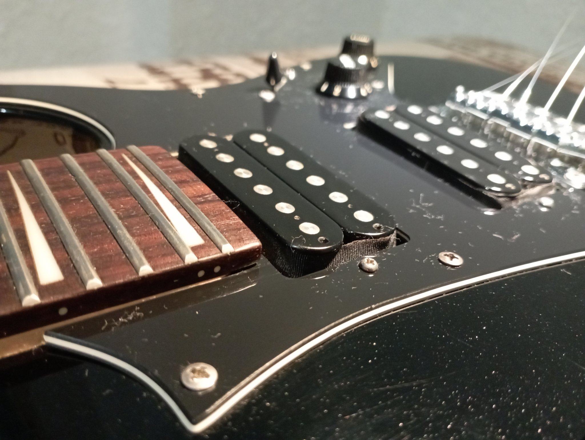 Думал вообще купить новый пикгард, но на эту гитару он нигде практически не продаётся, только на Амазоне где то и т.д