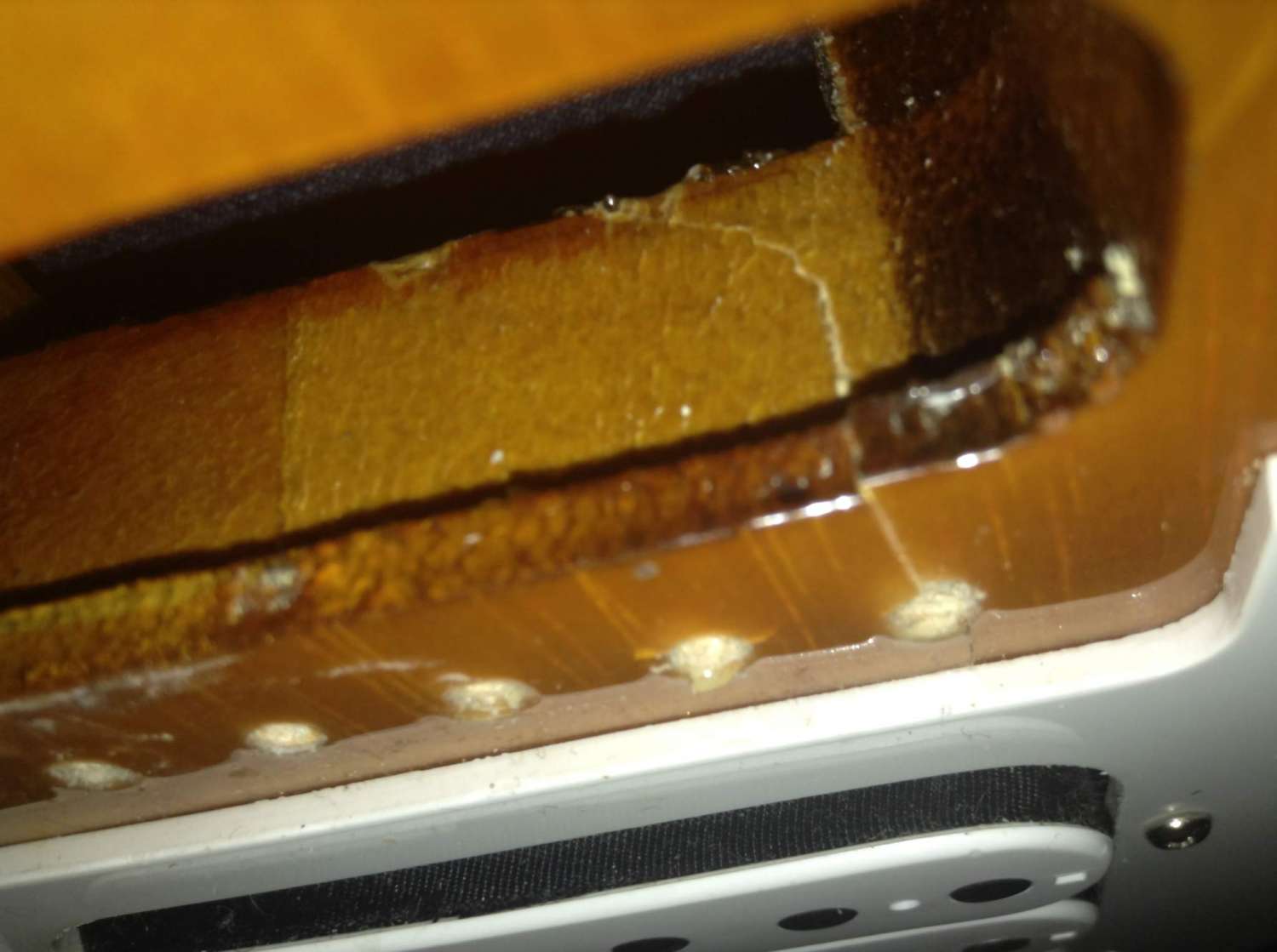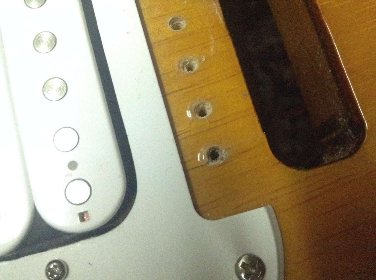 Имеется Squier Bullet Strat И у меня в нем появилась трещина. В области куда вкручивается бридж. И когда я заменил струны правую часть бриджа подняло к пикгарду, и дерево немного задралось по трещине. Я сразу снял струны и пружины и снял бридж. И увидел что трещина пошла от места куда входит шуруп. Подскажите пожалуйста что можно предпринять в такой ситуации.