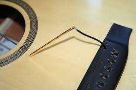 я снял родной звучек- и поставил новый наоборот = что бы начало звучка было под первой струной.- Для этого мне пришлось проделать в бридже отверстие для провода в районе ниже первой струны.