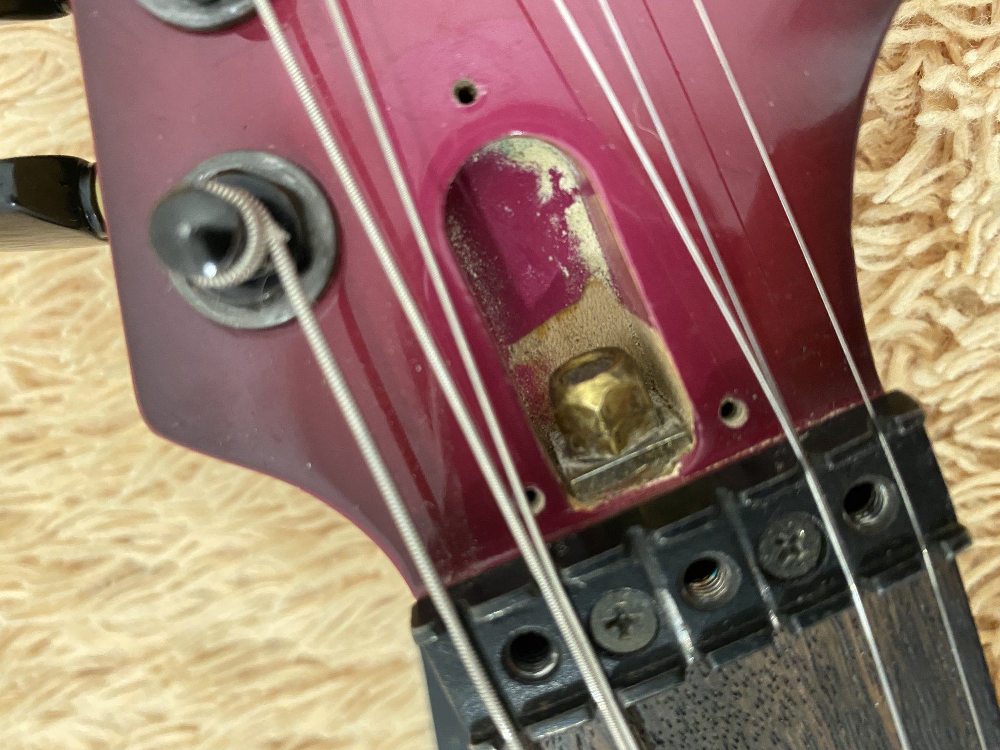 nw-, Открути гриф и посмотри - правда, есть шанс, что анкер с другой стороны крутится. В 80-90-х на фернандесе сплошь и рядом грифы с пяточной стороны регулировались. Если гитара тех годов - кто ж знает, что с ней за её жизнь делали туда-сюда.... Судя по фото, анкер меняли, причем (по какой-то причине) задом-наперёд, и, скорее всего, втулка со шлицем именно в пятке. Попробуй