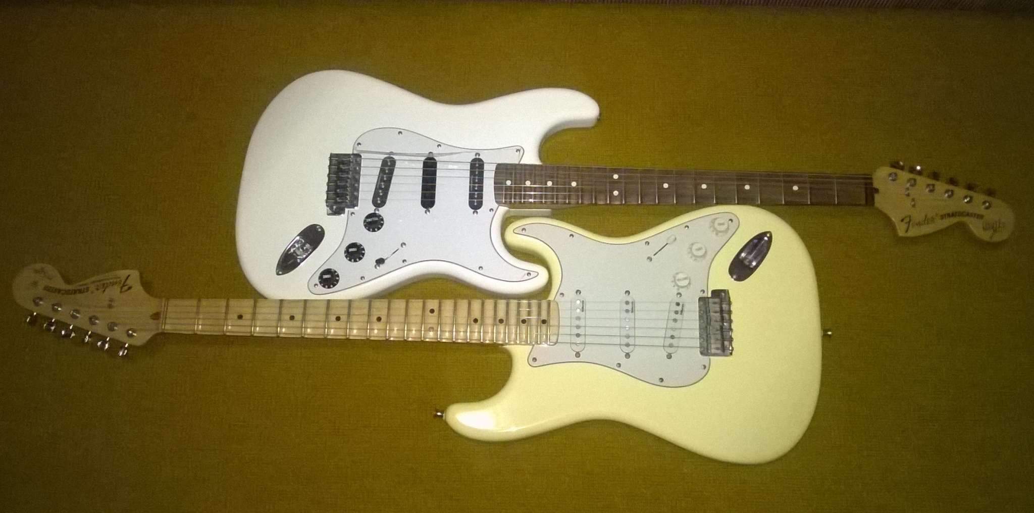 Вобщем купил в музыкальном магазине на проспекте мира. Цвет чудным образом оказался как на гитаре как у блекмора сейчас (А не то что продают под видом его гитары за бешеные деньги.) Далее в гитару желательно разработать и поставить пассивный корректор тона, который бы при уменьшении громкости на гитаре увеличивал ВЧ. Далее я поменял датчики вместе с Пикгардом или как его там. В подписных гитарах его стоят датчики как у него в 80х, довольно шумные , да и я всегда стремился к звучанию Come hell or high water 1993 года. Поэтому были заказаны в америке датчики, которые он использует с 1991 по настоящее время. Они не шумят, при этом являются синглами, со всем богатством и выразительностью звучания синглов. Ещё у них в 10 раз меньшее магнитное поле, что увеличивает сустейн. А Блэкмор помешан на сустейне. Далее удаляём к чёрту средний датчик и ставим крышку от него. Опять же меньше датчиков - меньше магнитное поле - больше сустейн. Вклеиваем на эпоксидку гриф - больше сустейн. Откручиваем пластиковую крышку сзади - больше сустейн. У Блэкмора и Мальмстина крышек нет. (Хотя Мальмстин играет с голым пузом и волоски попадают в пружины, но терпит ведь) Для увеличения сустейна я ещё заблокировал термоло деревянными клиньями.