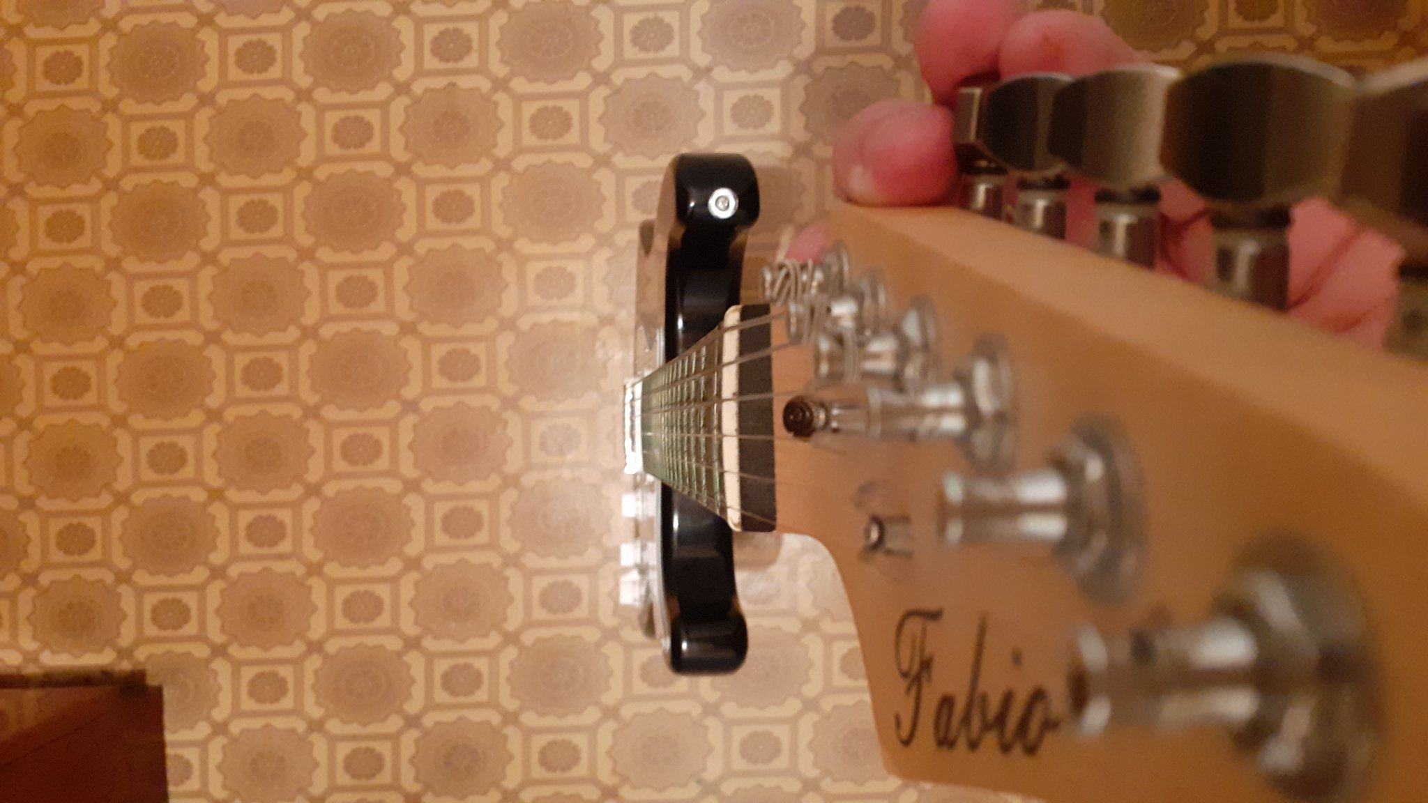 Если есть каподастр, зажми им первый лад, потом зажми пальцем последний и посмотри на высоту первой и шестой струны над девятой ладовой палочкой.