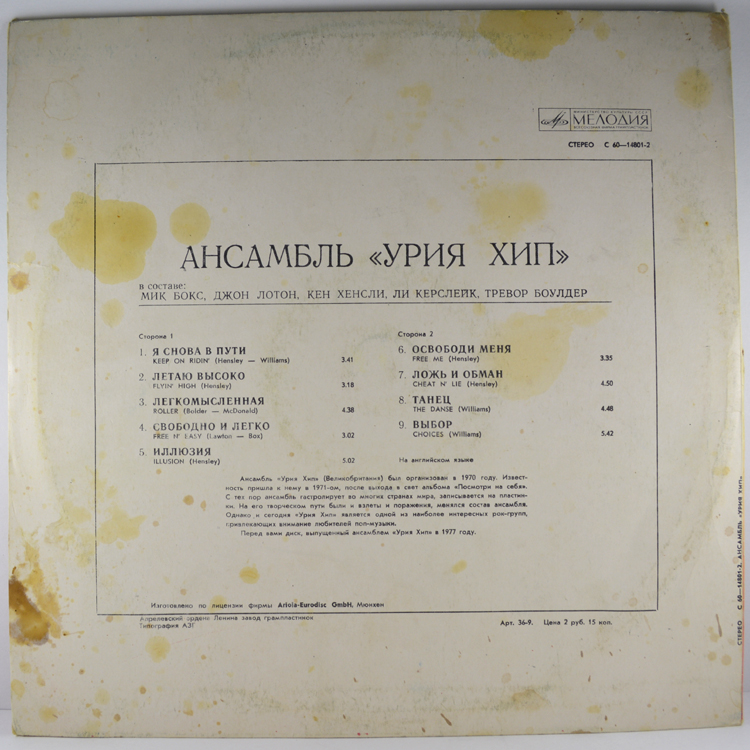 Изготовлено по лицензии фирмы Ariola-Eurodisc GmbH
