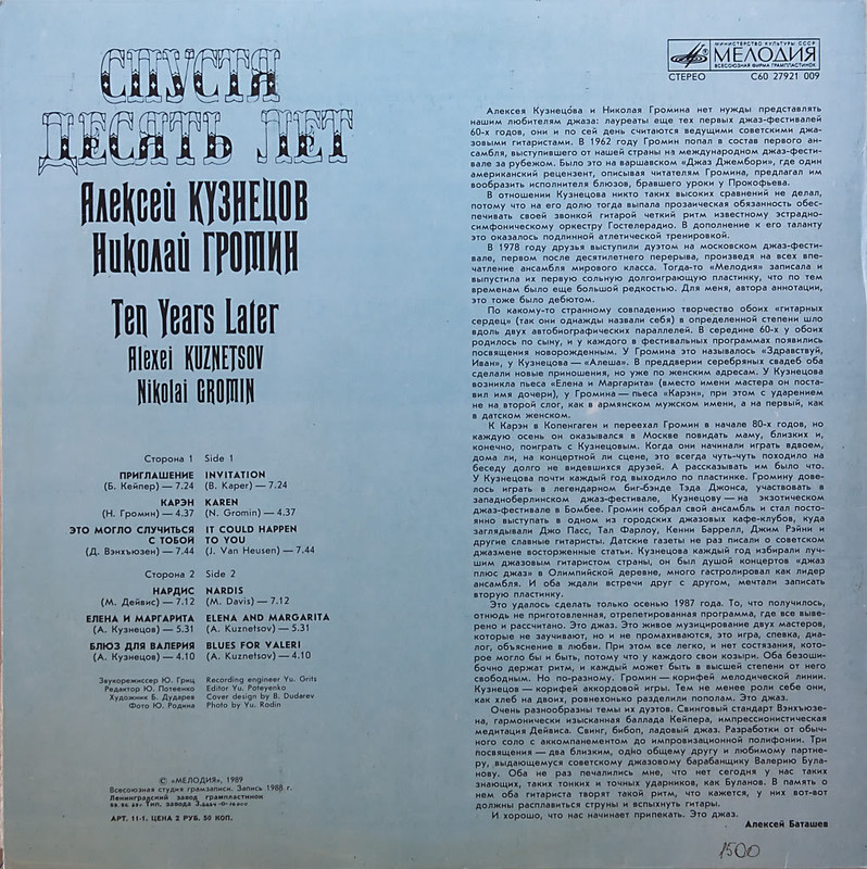 ... и добавил:Мастер Михалыч, Не нужно сравнивать Советских джазовых гитаристов и западных.