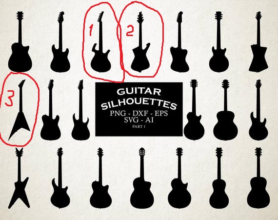 Привет, друзья! Делаю изделие для интерьера с силуэтами гитар. Подскажите, пожалуйста, что это за модели гитар (или серия моделей) и кто из известных гитаристов на них играет.