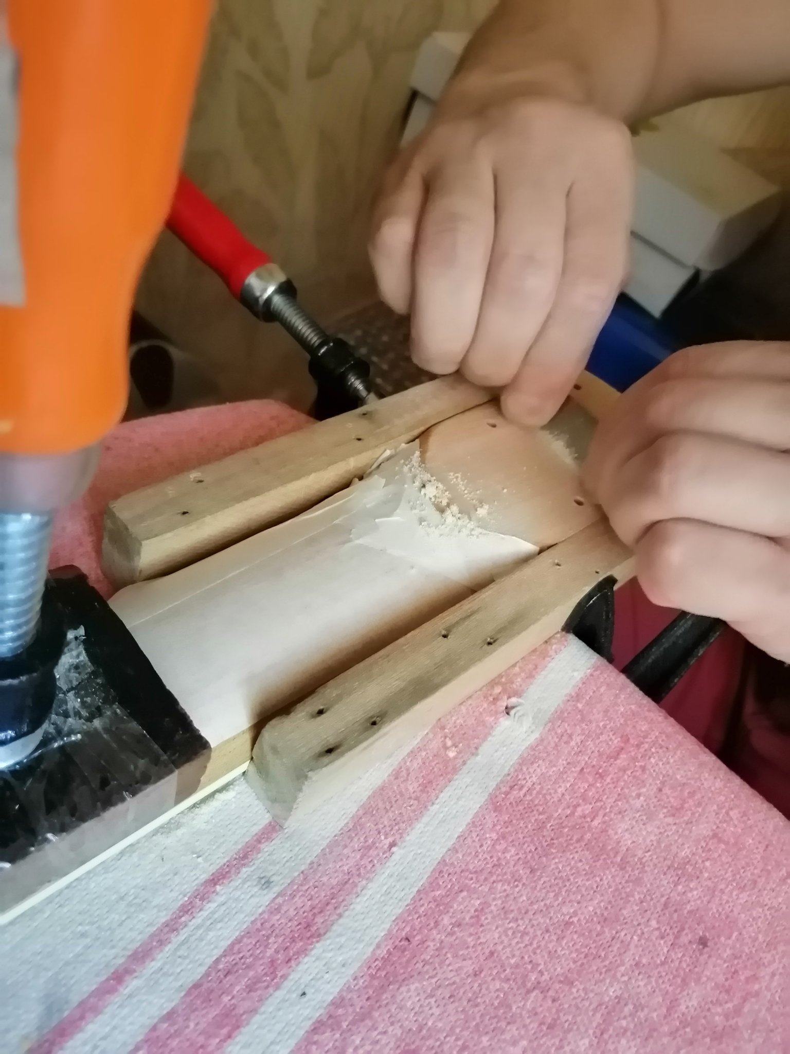 Т. Е получается гриф завален на одну сторону, это именно пятка мерил штангелем, карман ровный, накладка тоже