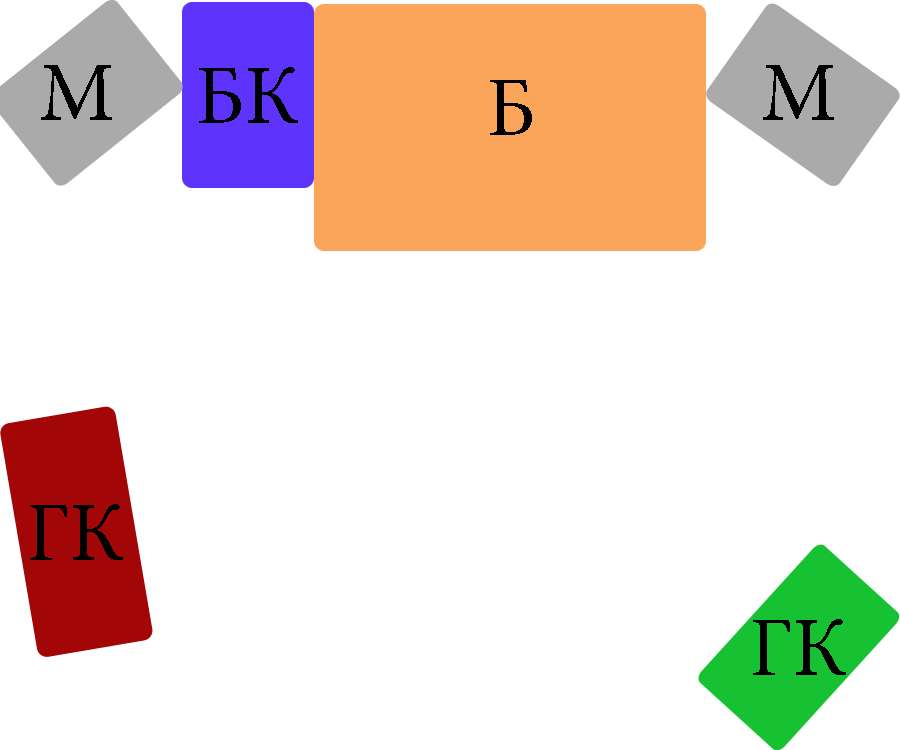 М-мониторы(порталы), Б-барабаны, БК-бас.комбо, ГК-гитарный комбо.