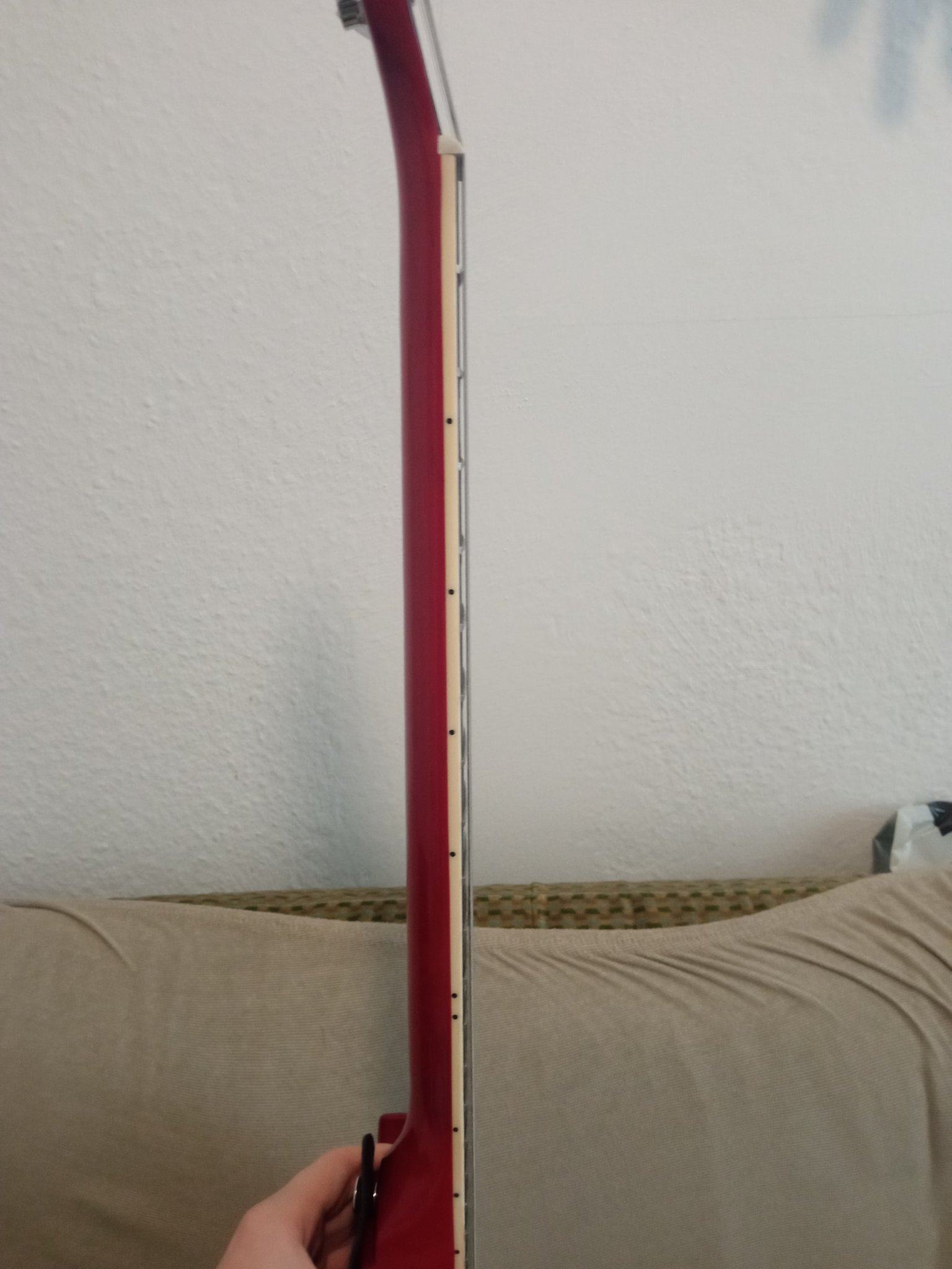 Ужас конечно, ни капли любви в работе(Но ничего страшного, многие начинали и начинают с бюджетных гитар. Выбора особо нет - либо никакая, либо такая.... и добавил:Может ли кто-то подсказать по фото, достаточный ли прогиб? Или можно ещё анкер подкрутить?(