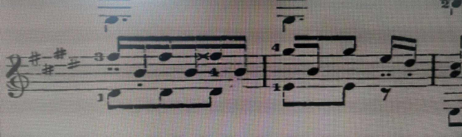 Смущает "крестик" в третьей доле и четвёрка (предполагаю нужно вместо третьего мизинец подготовить для следующего такта).
