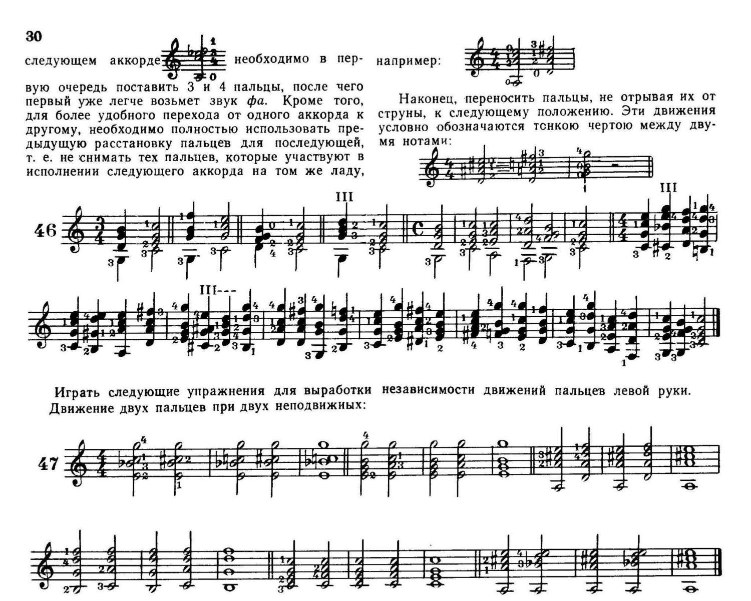 Отдельно хотелось бы обсудить классический подход к прижиманию, собственно, аккорда. В свое время, учитель говорил мне брать ноты по мере их извлечения, но хотелось бы обсудить подробнее - во-первых, аппликатуру (т.е. в каких случаях какие пальцы у нас работают), а, во-вторых, именно порядок взятия нот.