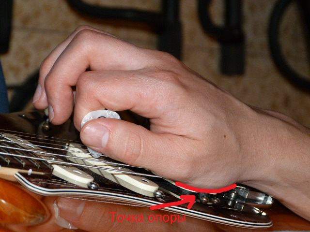 Еще одна очень важная вещь - это траектория работы медиатора. Она должна быть такая, чтобы он не застревал даже при сильных ударах и большом погружении. По ощущениям струна должна выталкивать медиатор, а не задерживать его. Я для этого делаю небольшой поворот кисти в сторону движения медиатора.
