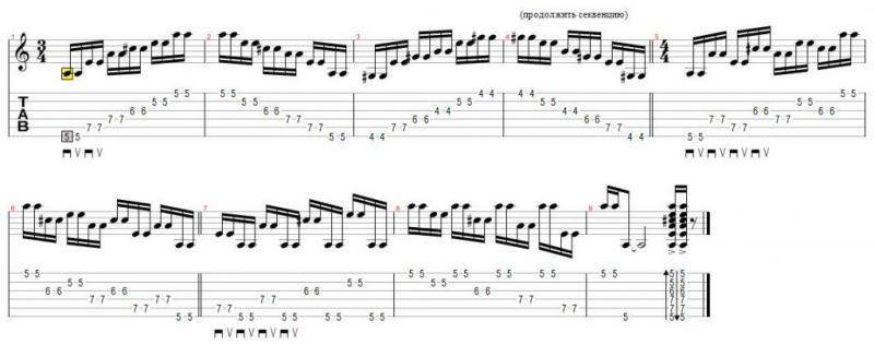 Упражнение на двойные удары в арпеджио и скачках через струны.