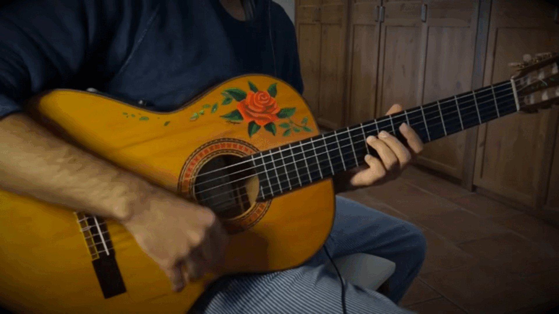Здравствуйте, товарищи гитаристы. У меня возникла проблема по поводу игры фламенко. Чекая ютуб, я нашел очень интересную технику, которую я не мог потом найти. В чем ее суть: гитарист вытягивает средний и большой пальцы и, вроде, поджимает к ладони безымянный и указательный (чтобы струн не касались), потом он быстро делает движения вверх-вниз и получается очень быстрый, красивый звук. Мне показалось, что это расгеадо, но я ничего вообще не нашел. Прошу вас рассказать мне, как это нужно правильно делать или хотя бы название. Я приложил соответствующий момент, дабы было намного понятнее.