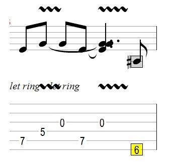 . 3 и 5 одна и таже только между ними пауза, глушишь подушечкой пальца, которым зажимаешь пятый лад. У меня с оригиналом совпало