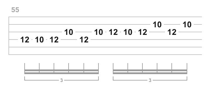 Как играются три ноты 10 (3я струна) - 12 (4я струна) - 10 (3я струна) на картинке (Темп: 108bpm): вниз-вниз-вниз или вниз-вверх-вниз? Или оба варианта допустимы и играть надо, как тебе самому удобнее?