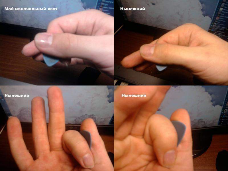 Anomaly, я тоже уже начинаю так думать, может я слишком резкую атаку провожу, или медиатор погружаю сильно в струны... Сижу вот опять, разбираюсь. Вот сейчас попробовал взять медиатор глубже вот так