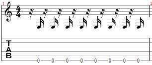 Как говорили движения правой руки должно быть непрерывное, т.е. не останавливаться на паузах...первые две восьмушки играем ударом вниз) потом третью снова ударом в низ, руку возвращаем вверх как-бы пропускаю удар чтобы выдержать пазу потом снова удар вниз уже по заглушенным струннам, удар вверх уже с аккордом...потом идет 16-ая сильная доля на удар метронома, здесь как-бы правую руку не играю опускаем чтоб снова выдержать паузу, потом вверх с аккордом а потом сектоли идут...и вот там не понятно с этим штрихом становится...по логиге последаяя секстоль по заглушенным должна игратся ударом вверх...а получается что заканчивается на удар вниз...