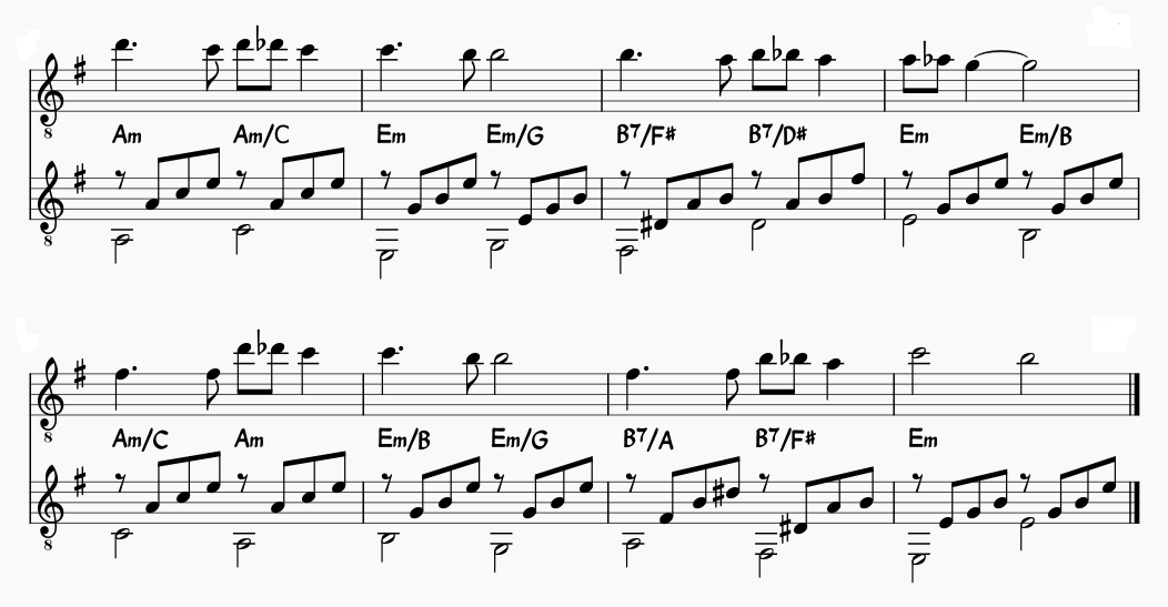 этом (русско-цыганском то есть) стиле "запали" именно они, а вот с восходящими, например, дело вообще туго. Можно ли нафаршировать вариацию восходящими хроматизмами так, чтобы цыганочка по-прежнему была похожа на цыганочку? Я лично не знаю