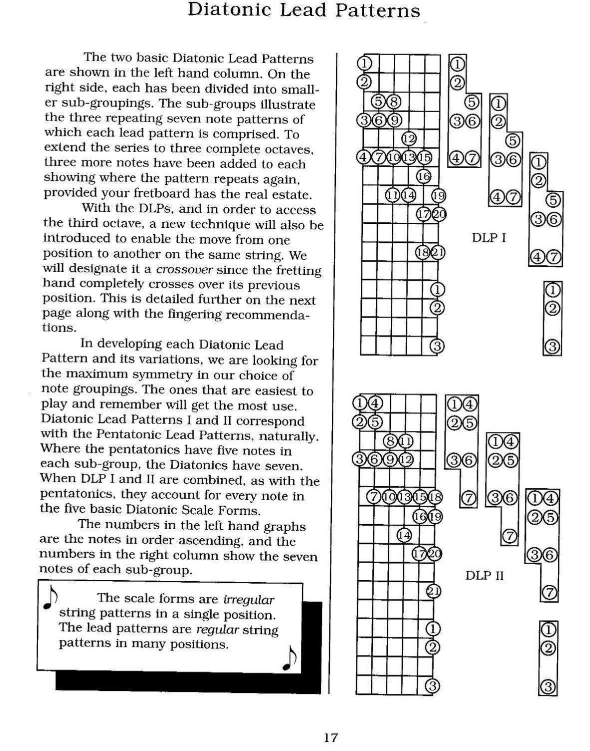 Если играть гамму трихордами только в восходящем движении, постоянно прыгая в конце на тот же трихорд с 1 струны на 6ю и постепенно двигаясь вверх по грифу, то возникает образ движения по спиральной ленте, обвивающей гриф ))